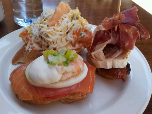 1. Oh yeah that is smoked salmon, egg and shrimp with some lime cream magic goo. I heard yesterday that San Sebastian was voted the number 1 place in the world to eat for 2 straight years!