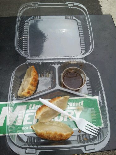 My only complaint about Portland’s food truck paradise was the lack of seating. I searched for an open park bench, but I felt my bottom lip quivering in anticipation as shuffled around in panicked circles. I finally decided to stand at a newspaper dispenser at the corner of a quite busy traffic light, where I proceeded to dribble brown sauce down my face and scoff out pants of “Ah, Ah! Hot!” I was embarrassed later, but at the time, you couldn’t have moved me from my beloved crescents of meat.