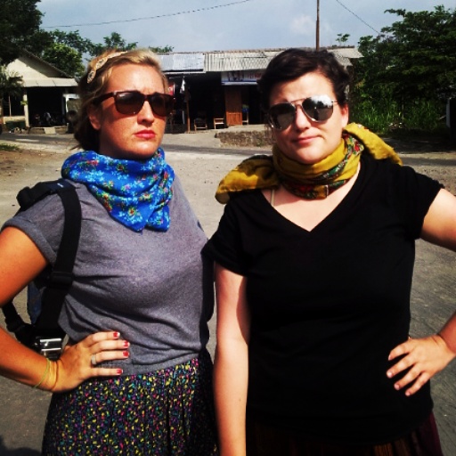 It took a few moments to paint on these serious faces, but we felt it necessary to wear our best “extreme sport” expressions, as we were about to ride a Jeep through the active volcano, Mount Merapi. Sara’s lovely dimples and my gaping grin didn’t seem suitable for a setting so obviously intense.